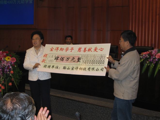 "寶得教育基金":2006年,在鞍山市第十三中學(xué)50周年校慶時(shí),寶得公司一次性捐資100萬(wàn)元用于獎(jiǎng)勵(lì)優(yōu)秀學(xué)生教師、資助寒門(mén)學(xué)