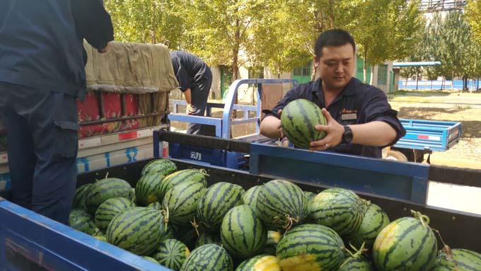 廠房里,公司工會(huì)為奮戰(zhàn)在一線的職工發(fā)放清涼解署的鹽汽氣和西瓜,給大家送去一份夏日的清涼。工會(huì)主席叮囑職工要注意生產(chǎn)安全,合理安排作息時(shí)間,做好防暑降溫工作。