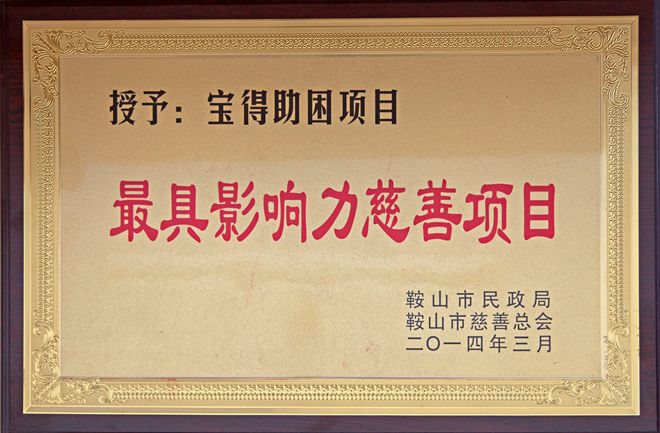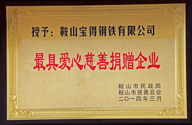 3月7日,在鞍山市慈善總會(huì)第三次會(huì)員大會(huì)上,公司榮獲“最具愛(ài)心慈善捐贈(zèng)企業(yè)”、“最具影響力慈善項(xiàng)目”榮譽(yù),董事長(zhǎng)榮獲“最具愛(ài)愛(ài)心慈善楷模”榮譽(yù)稱號(hào)。