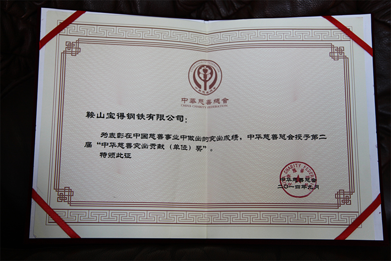 為表彰在中國(guó)慈善事業(yè)中作出的突出貢獻(xiàn),中華慈善總會(huì)授予公司第二屆“中華慈善突出貢獻(xiàn)(單位)獎(jiǎng)”。5月20日,副市長(zhǎng)陳守義、市民政局局長(zhǎng)解永浮、副局長(zhǎng)龔毅濤及市慈善總會(huì)領(lǐng)導(dǎo)到公司頒獎(jiǎng),董事長(zhǎng)、總經(jīng)理接受頒獎(jiǎng)。