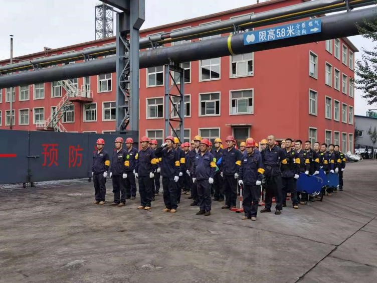 “報(bào)告馬廠長(zhǎng):我是當(dāng)班維護(hù)班長(zhǎng)曹雷,9點(diǎn)35分左右班內(nèi)三名員工在煤氣閥組平臺(tái)巡檢過(guò)程中發(fā)生煤氣中毒事故,請(qǐng)求立即支援”……;“請(qǐng)搶險(xiǎn)救援組、安全警戒組、醫(yī)療救護(hù)組…立即趕赴事故現(xiàn)場(chǎng)集結(jié)”;“報(bào)告總指揮:搶險(xiǎn)救援組10人到達(dá)現(xiàn)場(chǎng),6套呼吸器及3副擔(dān)架救援裝備完好,可正常使用”……;“各救援小組按預(yù)案規(guī)定程序及商定的實(shí)施方案,立即展開(kāi)救援行動(dòng)”……;“報(bào)告總指揮:三名傷者已成功救出,兩人中毒較重,一人較輕,……”;“報(bào)告總指揮:煤氣泄漏部位搶修完畢,已無(wú)泄漏現(xiàn)象,設(shè)備可正常運(yùn)行”……。隨著一條條救援指令的下達(dá),現(xiàn)場(chǎng)警戒、現(xiàn)場(chǎng)救援、傷員急救、設(shè)備搶修、現(xiàn)場(chǎng)清理及組織生產(chǎn)恢復(fù)等過(guò)程緊張、有序地完成,實(shí)戰(zhàn)演練圓滿(mǎn)結(jié)束。