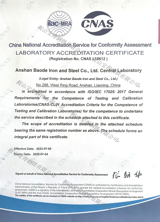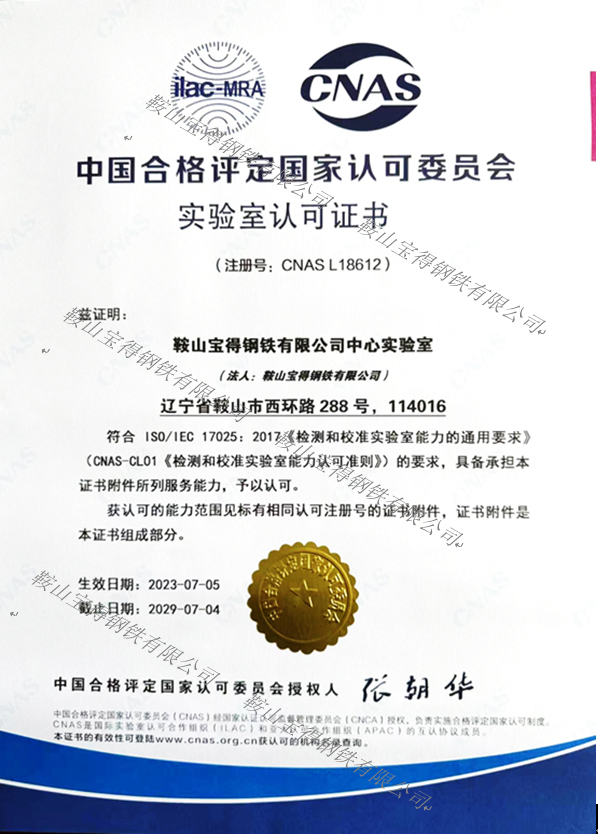 鞍山寶得鋼鐵有限公司中心實(shí)驗(yàn)室獲得